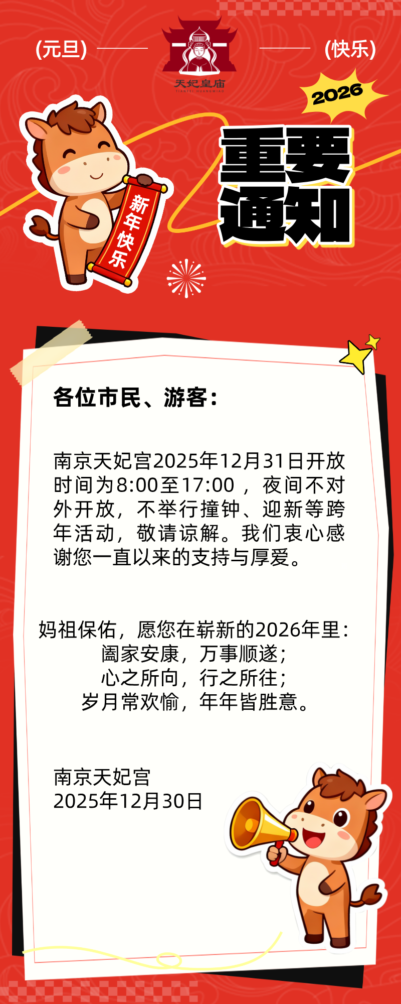 通知 | 南京天妃宫2025年12月31日夜间不对外开放